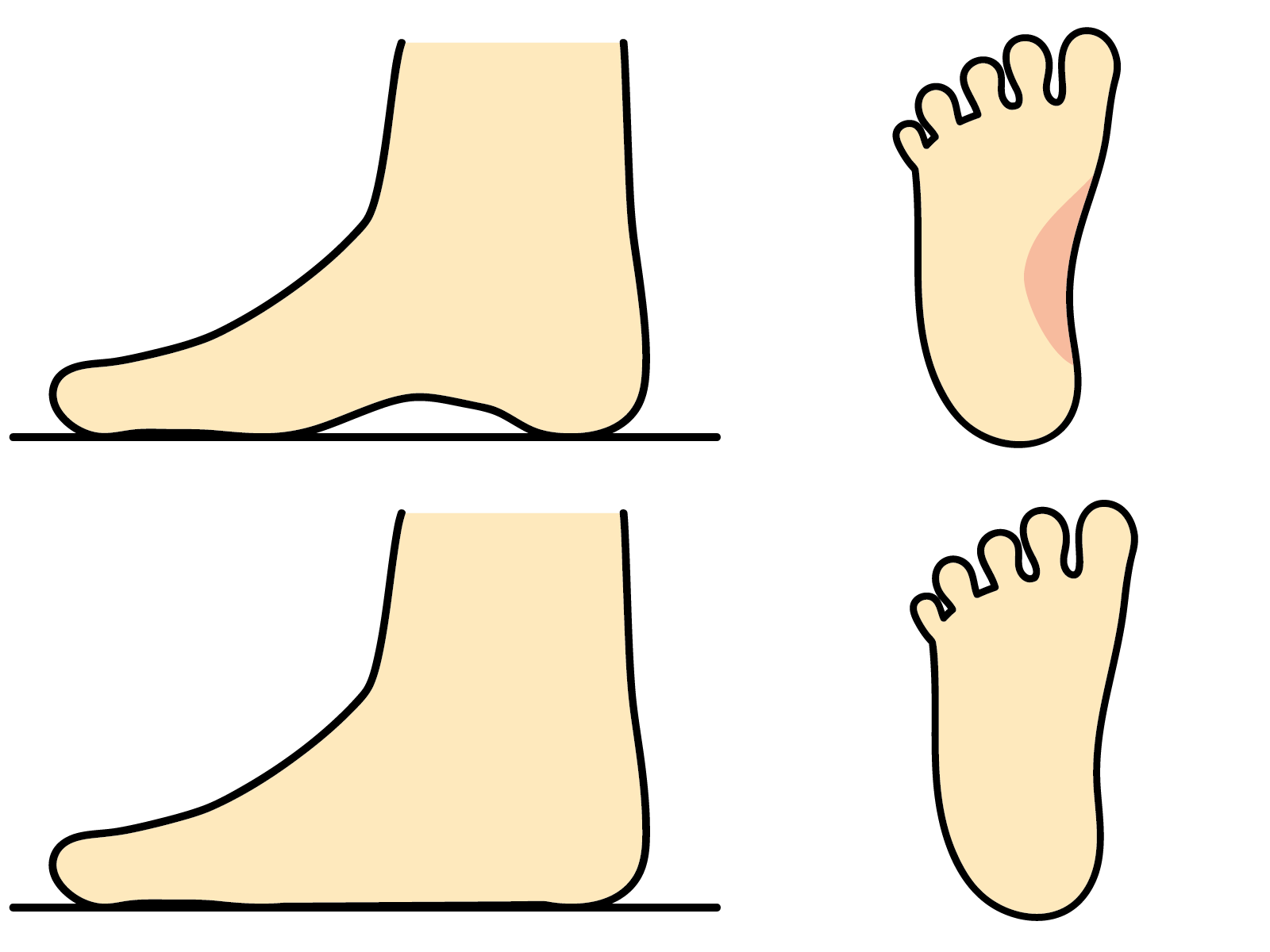 さらに細く健康な足の構造を見ていくと、足のアーチは3種類に分けることができます。