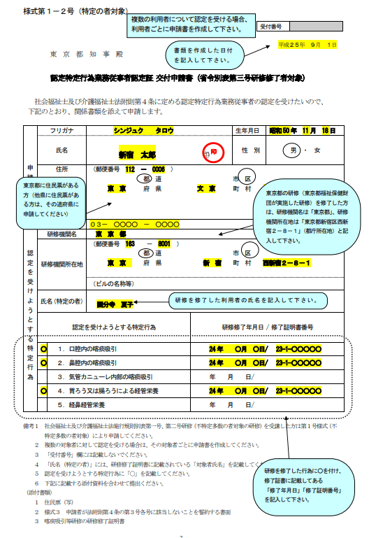介護職員による喀痰吸引・経管栄養の実施 事務手続き・必要書類