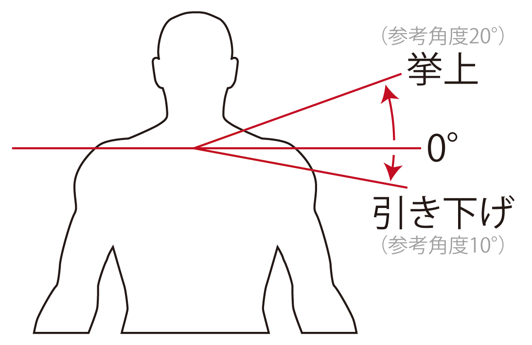 | 挙上(elevation) | 20° |