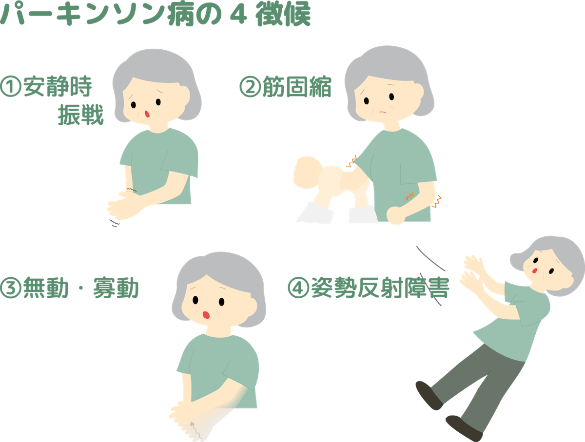 また、パーキンソン病でなくても、薬の影響などで姿勢反射障害を含むパーキンソン病と似たような症状が出ることもあり、そのような状態のことをパーキンソニズムと呼びます。